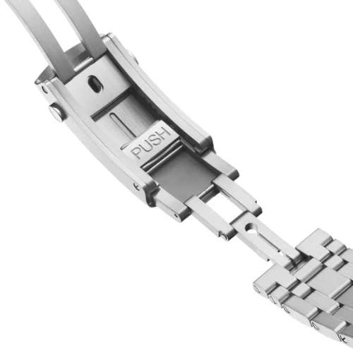 An integrated stainless steel bracelet with a sleek folding clasp and diver extension — where function embraces form, and comfort meets control.
