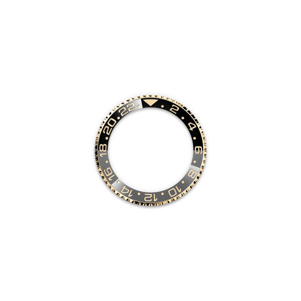 Bezel: Bidirectional rotatable 24‑hour graduated bezel; two‑color Cerachrom insert in grey and black ceramic, engraved numerals and graduations